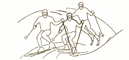 мере загружаются обе лыжи. Это мешает сохранению равновесия. Во время скольжения в повороте постепенно сближайте лыжи