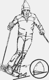 чтобы усилить давление на лыжи, и колени принимают угловое положение.